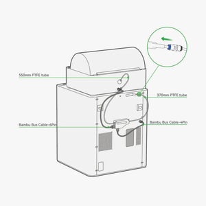 The Filament buffer is an accessory that is required in conjunction with a single AMS unit. Its function is to provide a buffering effect for the filament. The interface is 4-Pin cable with 3mm pitch with snap terminal input, 6-Pin cable with 3mm pitch open snap terminal output.