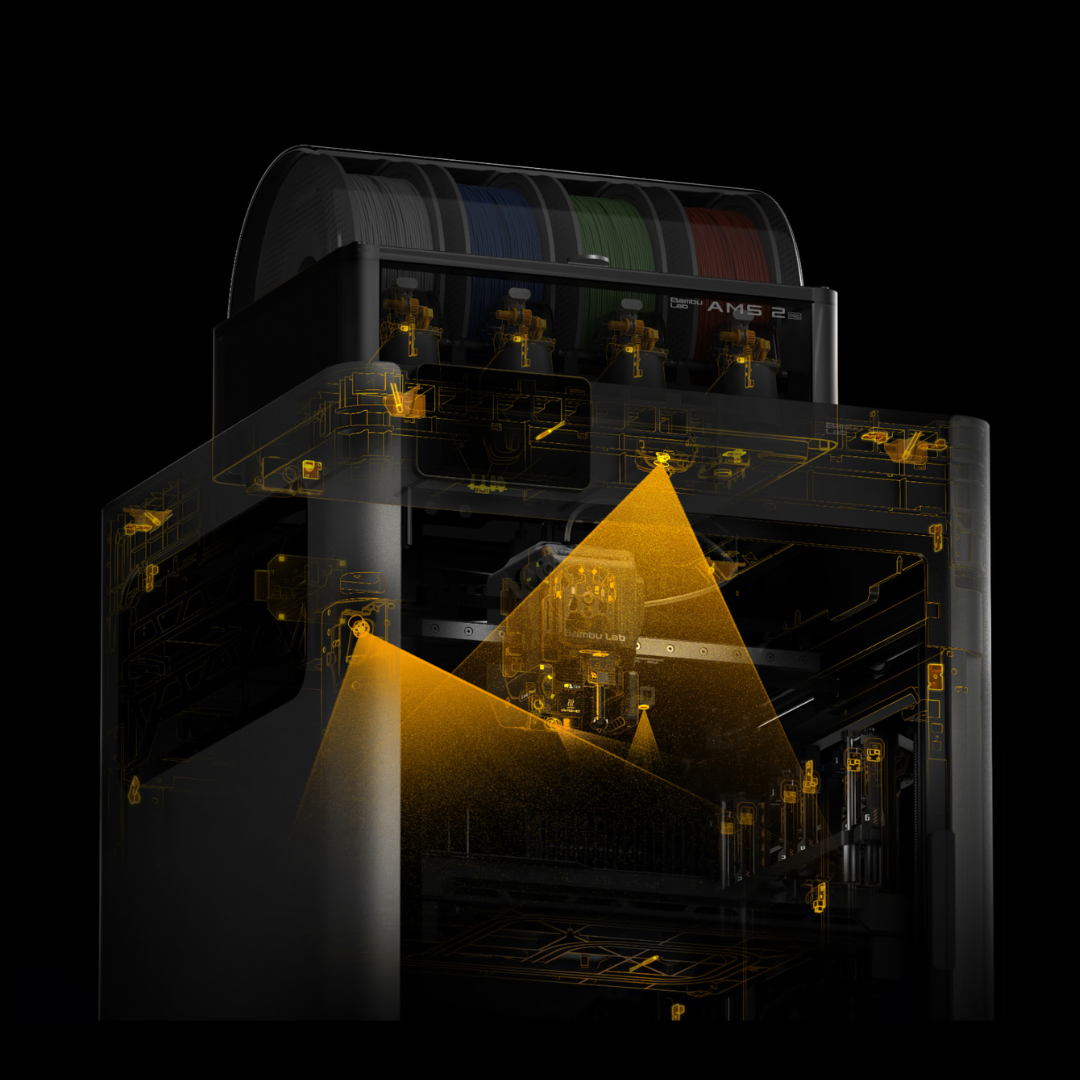 The H2C is equipped with an array of 59 sensors* and a quad-camera computer vision system, all orchestrated by our proprietary neural algorithm. During printing, this system delivers intelligent, real-time diagnostics that can detect even the most subtle print anomalies as they happen. You don't have to be an expert to solve problems—your printer does the job for you.