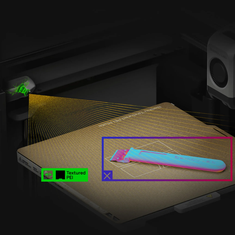 The P2S introduces advanced AI computer vision that actively detects common printing issues such as spaghetti, nozzle blobbing. It also checks your print start settings, ensuring a safe and accurate start to every print job.