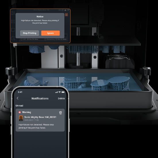 When debris or errors appear, Revo 16K reacts in real time and stops the print before it harms your LCD or release film.